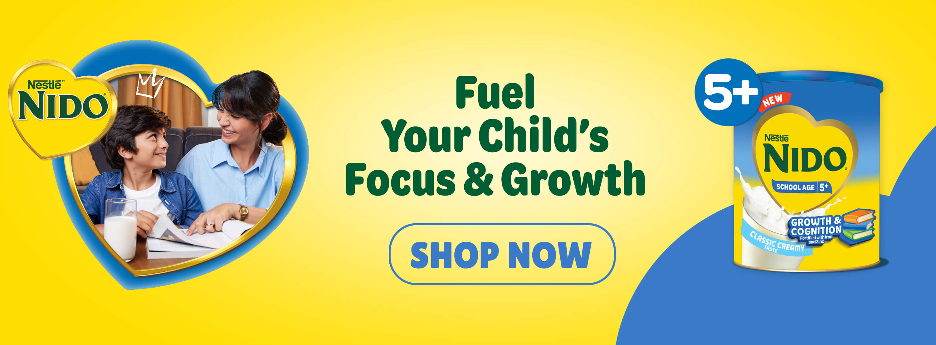 NIDO 5+ is the only milk fortified with iron and zinc for healthy cognitive function, and DHA for brain focus and memory. It's not just nourishment, it's a stepping stone to their potential.
